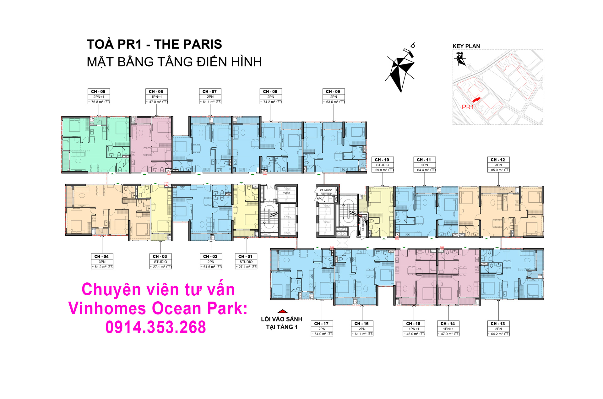 Thiết kế mặt bằng chi tiết căn hộ CH-13, tòa PR1, chung cư The Paris, khu đô thị VOCP1.