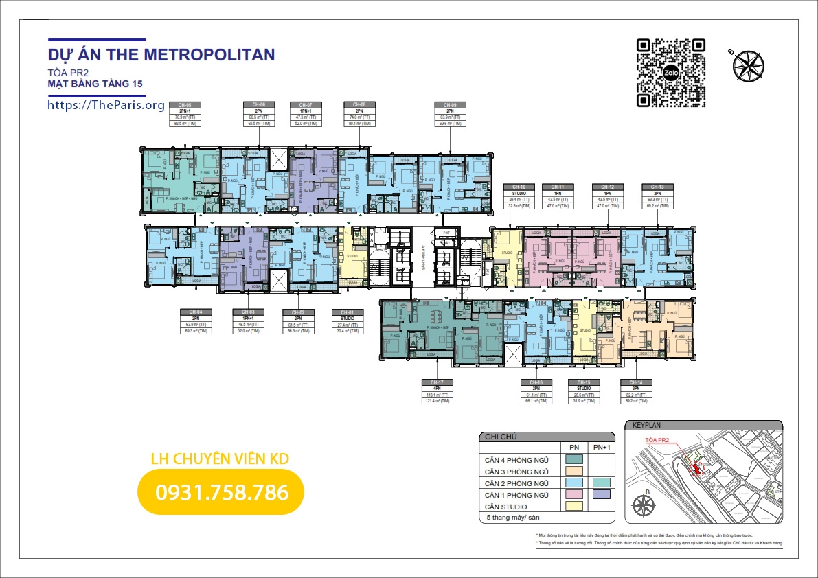 Thiết kế tổng mặt bằng tầng 15 chung cư PR2 (Paris 2) dự án The Paris.
